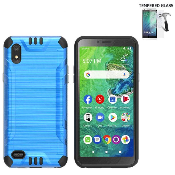 Phone Case For Walmart Family Mobile Tcl A2 5 5 A507dl Case Tcl A2 Tempered Glass Shock Absorbing Dual Layered Case Combat Blue Tempered Glass Walmart Com
